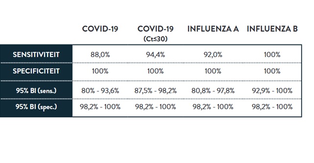 Voor de kwalitatieve opsporing van SARS-COV-2 en Influenza A & B antigenen. Monstername nasopharyngeaal