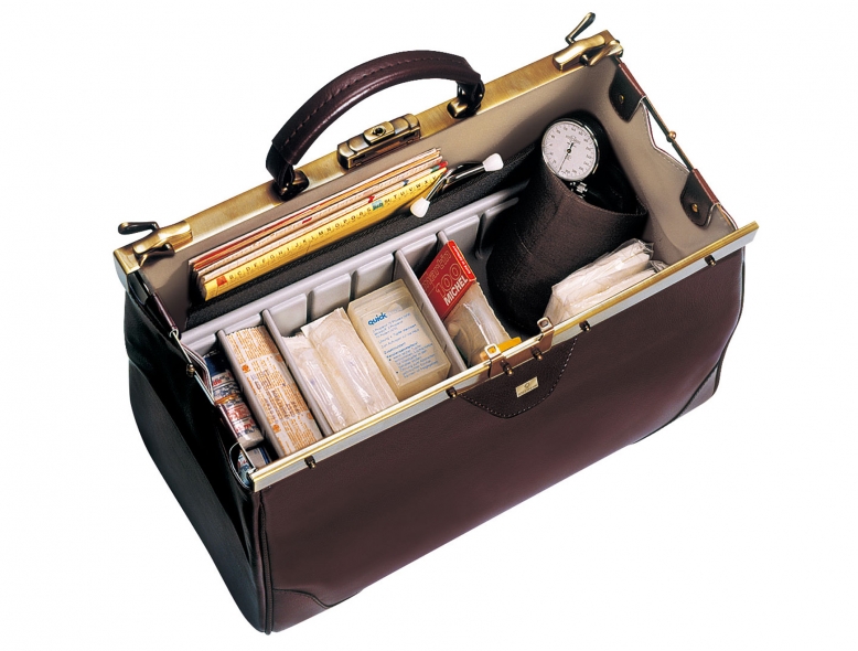 Klassiek City-Bag model, moderne vormgeving. Uitgerust met een stevige beugel met handvat en metalen klepsluitingen. Afwasbare voering met 2 zijvakken en uitneembare variabele vakindeling. Met versterkte randen. Leverbaar in zwart, bruin of bordeaux.