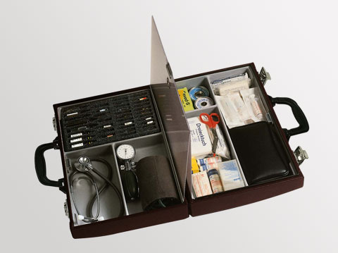 Uiterst fraaie dokterstas van krasvrij leder of kunstleder. Tijdloos en compact model met uitgekiende indeling voor jarenlang plezier