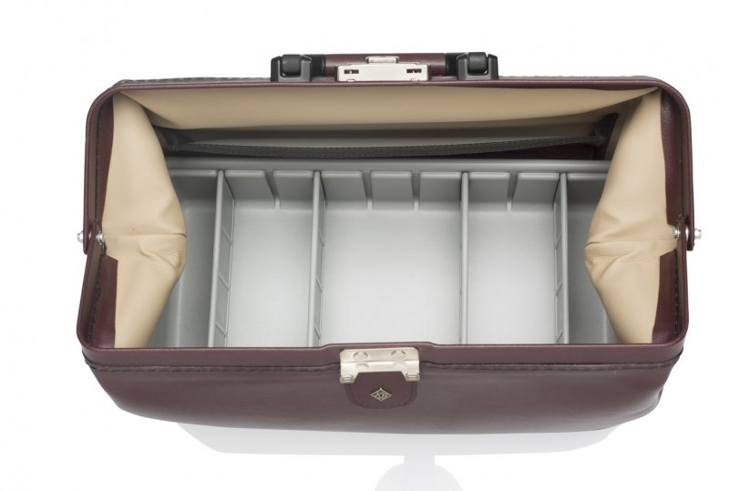 Moderne lichtgewicht, lederen artsentas met stevige sluiting en slot. Afwasbare binnenbekleding