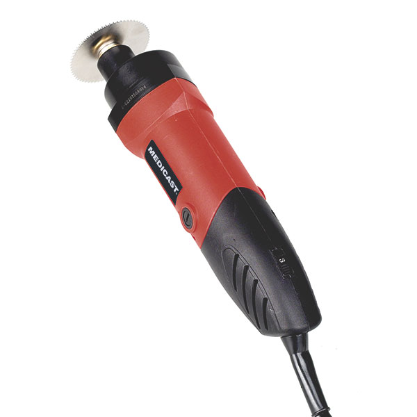 Elektrische gipszaag op netstroom, oscillerend type te bedienen met 2 handen.