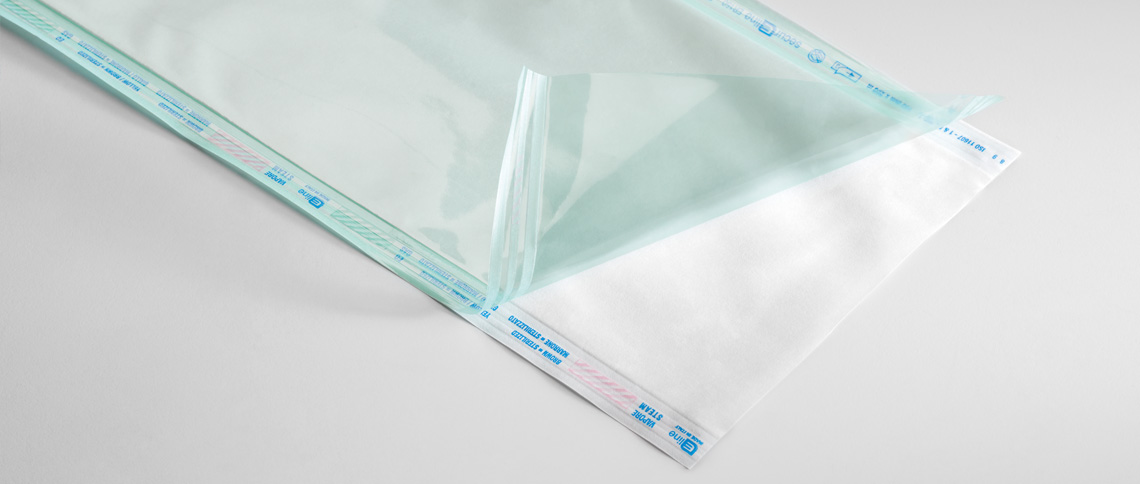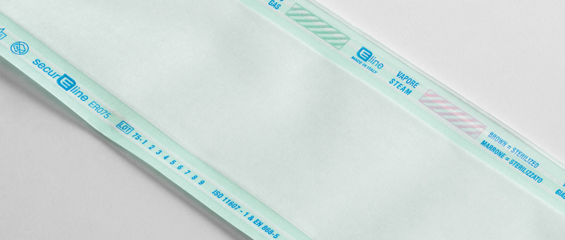 Autoclaaffolie op rol, zonder vouw, met indicator. Gemaakt van medisch kraftpapier en gekleurde medische plastic folie garandeert deze autoclaaffolie een uitstekende grip en afpelbaarheid. De folie is uitgerust met versterkte zijnaden en gekleurde procesindicatoren zodat de gesteriliseerde producten onmiddellijk kunnen worden onderscheiden van de niet gesteriliseerde. Type Securline.