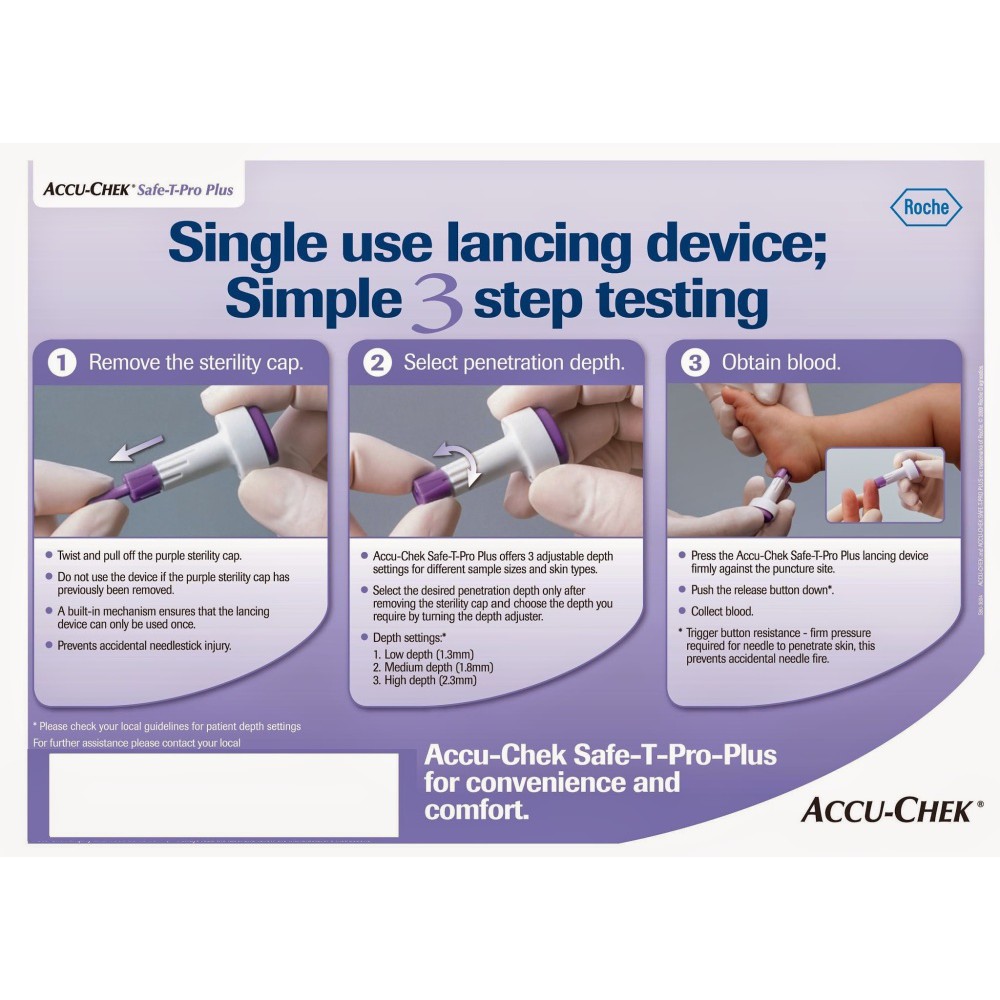 AccuChek Safe-T-Pro Plus is een wegwerpbare prikpen die comfort en flexibiliteit biedt. Door de verschillende veiligheidsfuncties en de op maat verstelbare instellingen biedt de AccuChek Safe-T-Pro Plus prikpen zeer veel voordelen en biedt ze de patiënt veiligheid en gebruiksgemak. Bovendien voldoet ze aan de veiligheidsvereisten die worden gesteld door gezondheidsautoriteiten, regelgevende instanties en zorginstellingen.