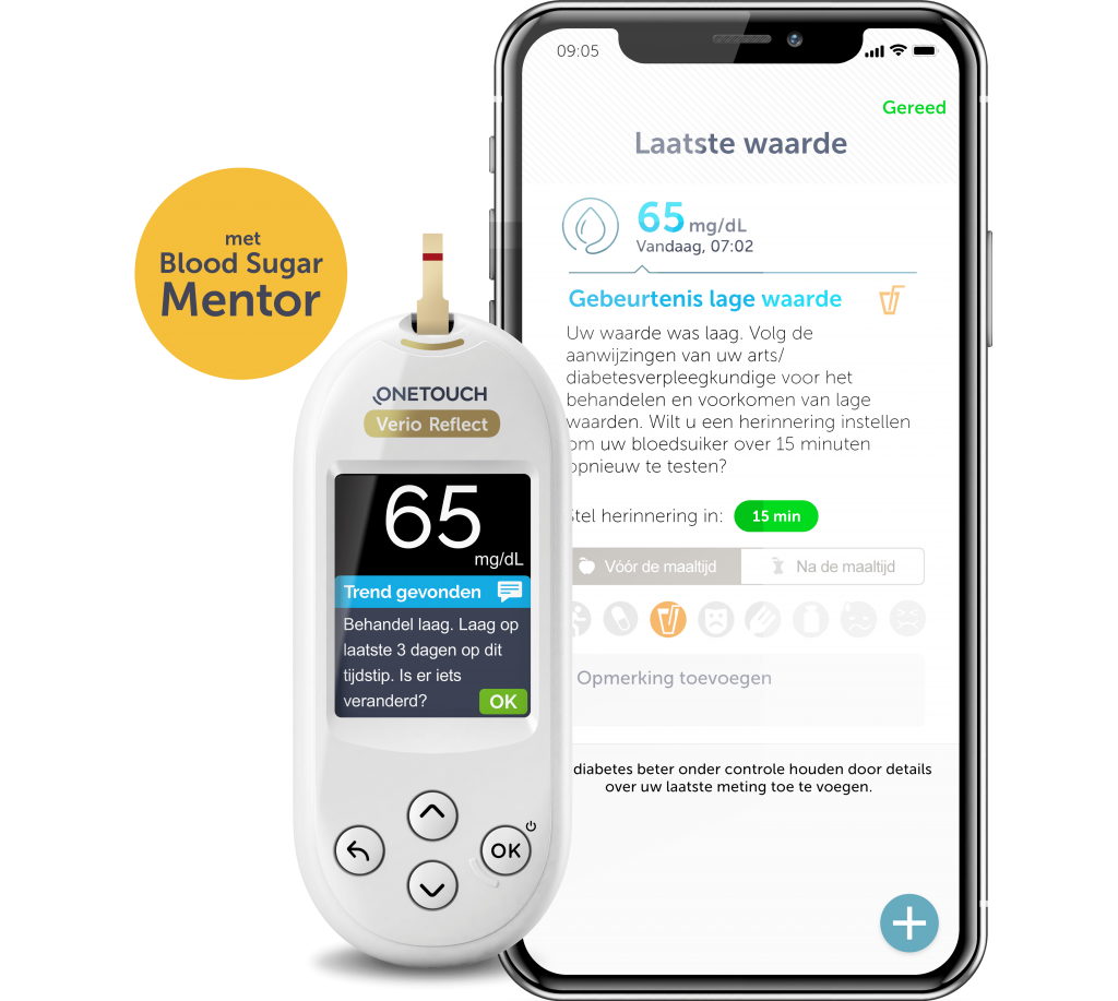 - OneTouch Verio Reflect™ Bloedglucosemeter (batterijen inbegrepen)