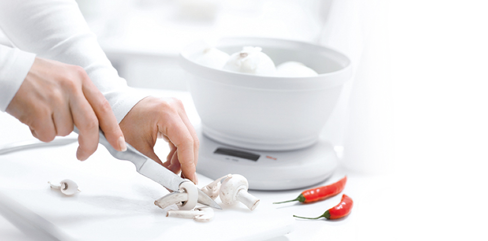 Dieetcomputer met tarrafunctie. 2,2 kg./2 gr. Nieuw type. Zeer eenvoudig te bedienen: kan herhaaldelijk terug op nul worden gezet, ongeacht de hoeveelheid ingrediënten die al in de schaal zitten. De weegschaal en schaal passen zo goed in elkaar, dat de weegschaal gewoon in de schaal kan worden opgeborgen.