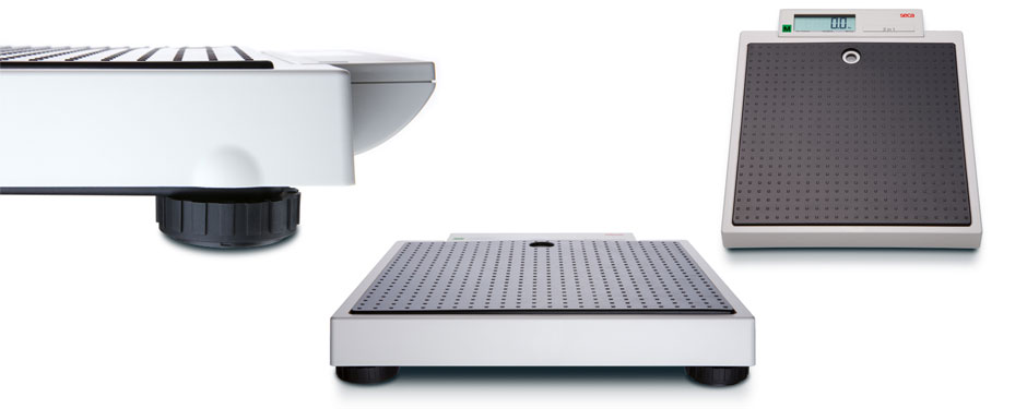 Compacte en zeer stabiele elektronische personenweegschaal, plat model met CE-keuring klasse III. Ideaal voor mobiele inzet. De stabiliteit van de Seca 877 wordt verzekerd door vier grote gelijkmatige poten, zelfs wanneer kleine kinderen bij de ouders op de arm gewogen worden.