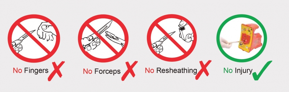Qlicksmart BladeFlask verwijdert met één simpele handbeweging scalpelmesjes snel en eenvoudig van de houder. Het verwijderde mesje valt automatisch in de afgesloten container, waar plaats is voor 100 mesjes. Na 100 mesjes sluit het systeem automatisch. De QlickSmart kan alle gangbare messen verwijderen.