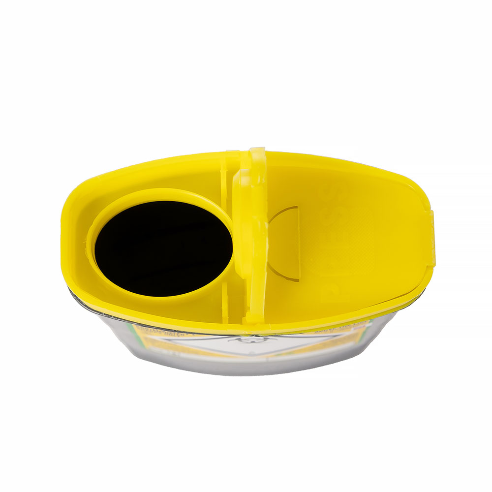 Schokbestendige, lekvrije en punctievaste naaldcontainer SHARPSAFE. Met anti-terugslag veiligheidsklep. Voorzien van handvat voor veilig transport. Autoclaveerbaar model.