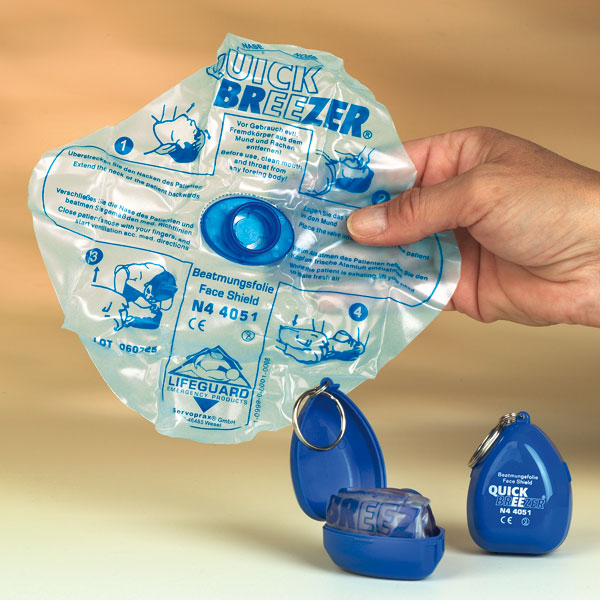 Beademingsmaskertje; handige sleutelhanger met mondstuk en uitademingsventiel