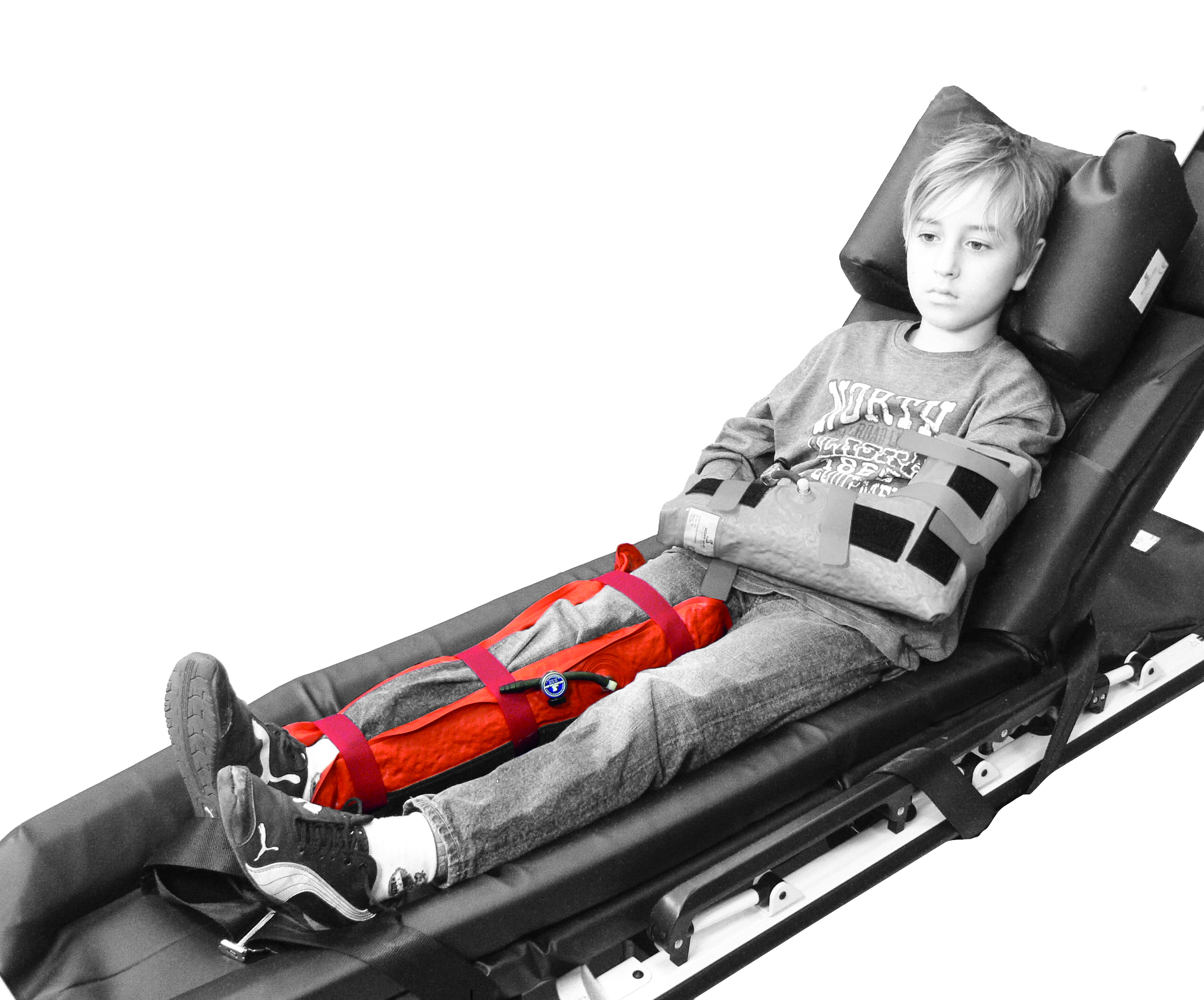 – Vacuümspalk been kinderen: zelfde beschrijving als spalken in vacuümspalkenset Schnitzler. Echter éénkamersysteem. Gemakkelijke toegang tot hiel. Fixatie d.m.v. klittenbanden. Röntgen doorlaatbaar (MRI en CT). Eenvoudig te reinigen