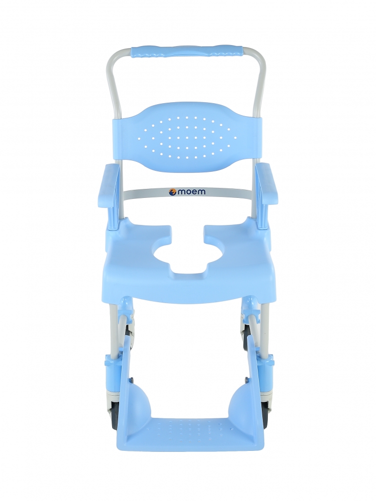 Mobiele douche- en toiletstoel, gemaakt van hoogwaardige materialen.