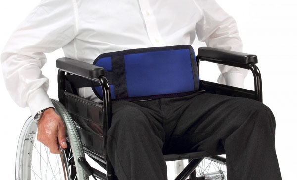 Buikgordel met snelsluiting achteraan, dus achter leuning van (rol)stoel vast te maken om manupilaties van de patiënt te verhinderen.