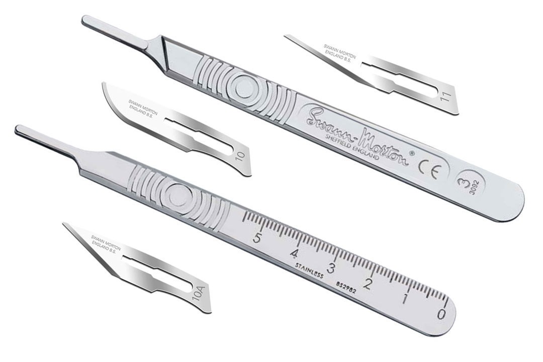 – Bistourihandvat n° 3 (ref. 70.201/A): voor mesjes n°s 6, 9, 10, 10A, E/11, 11, 11P, 12, 12D, 13, 14, 15, 15A, 15C, 15T, 16, en SG3.