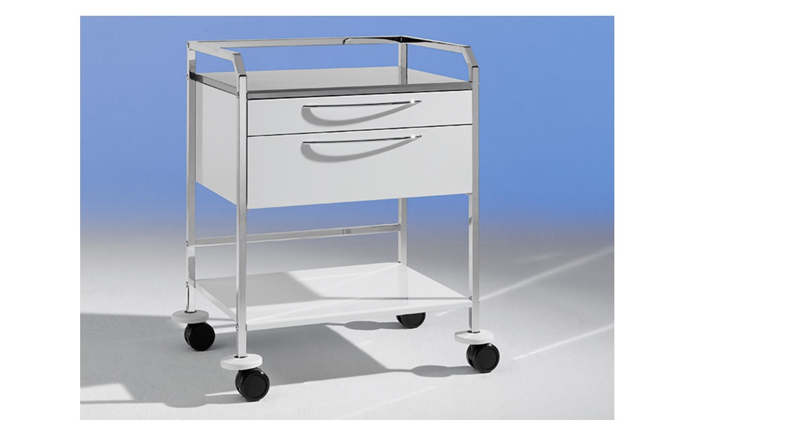 Laden gemonteerd op softglide-rollagers, vervaardigd uit RAL 9002 verlakt staal, met verchroomde ergonomische handgrepen