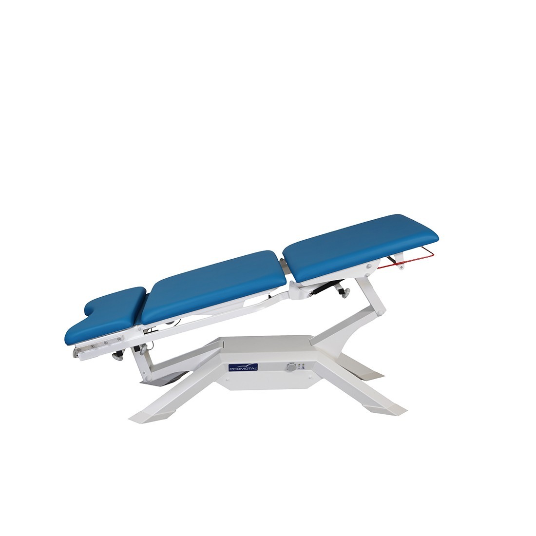 f) Model 3065-50: Gemonteerd op inklapbare wieltjes (elektrisch activeerbaar door aanhoudend contact). Niet geschikt voor mobiel gebruik, enkel bedoeld om tafel makkelijk te verplaatsen om bijvoorbeeld ondergrond te reinigen. Met inschuifbare hielsteunen.