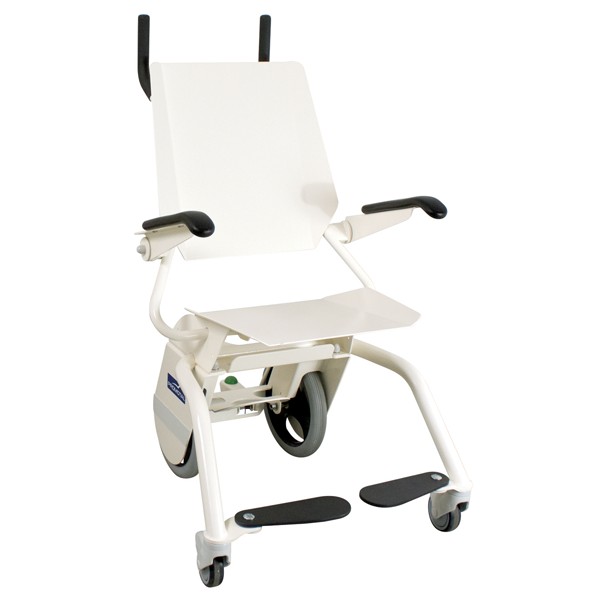 Eenvoudige patiëntentransportstoel (met ingebouwde accessoires) met heel wat voordelen t.o.v. de klassieke rolstoel. Speciaal ontworpen en aangepast zowel aan de behoeften van de patiënt als die van de zorgverlener
