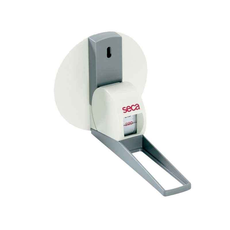 De plaatsbesparende Seca 206 lengtemeter is eenvoudig aan de wand te bevestigen en heeft een metalen meetband die automatisch weer oprolt nadat u de patiënt gemeten heeft. Eenvoudige aflezing van de lichaamslengte door een kijkvenster.