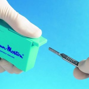 Verwijdert op een veilige en gemakkelijke manier de mesjes van het mesheft. Disposable.