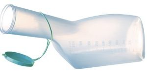 Urinaal voor heren doorschijnend plastic of melkwit, voorzien van afsluitdekseltje