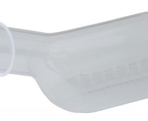 Urineschuitje voor dames in plastic, met uitgietteutje en stop