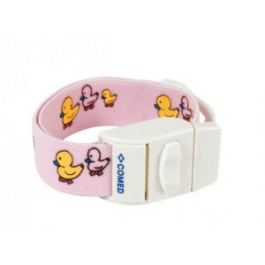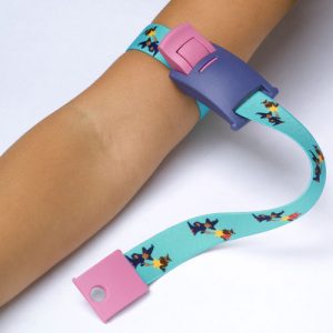 Garrot Clipcomed voor kinderen: in wasbare stof en met plastic slot. Het speelse lint is elastisch en bedrukt met kinderfiguurtjes. Autoclaveerbaar model, dat gemakkelijk is aan te brengen en eenvoudig met 1 hand kan worden gebruikt.