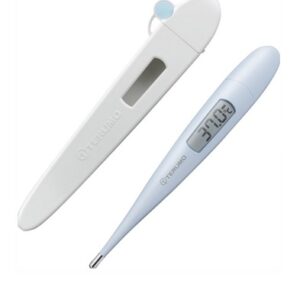 Waterdichte en onbreekbare thermometer met beeper en digitaal display. Geen knop noch schakelaar: thermometer wordt aan en uitgeschakeld bij het uitnemen en terugplaatsen in de koker. Beschikt over een niet-verwisselbare lithiumbatterij met lange levensduur (ca. 10.000 metingen), evenals een voorspellende functie: hij meet de temperatuur gedurende 20 sec en berekent volgens een ingebouwde formule het precieze resultaat op 0,1°C nauwkeurig; temperatuur wordt binnen 40 à 90 seconden voorspeldRef. C.205
