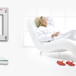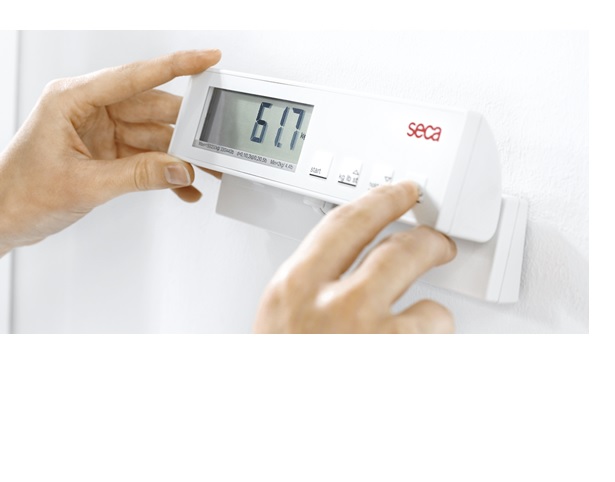 Compacte elektronische platte opstapweegschaal op regeldoppen en met losse display die op een tafel kan geplaatst worden of aan de muur kan bevestigd worden. Display en weegbasis zijn door een 225 cm lange kabel met elkaar verbonden. Voordeel: De display kan apart van de weegschaal afgesteld worden. Dankzij de handgreep, de compacte afmetingen, een minimaal gewicht en gelijkmatige voeten is de Seca 899 geschikt voor iedere ondergrond