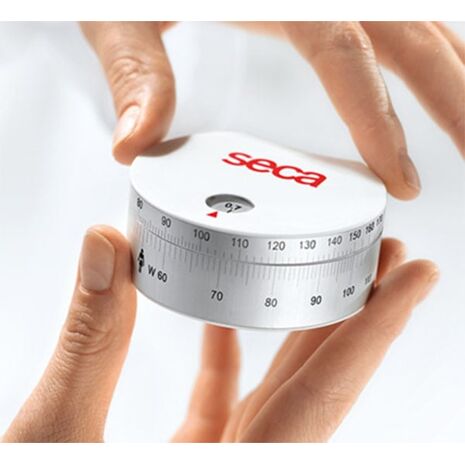 Intrekbaar meetlint van Seca om nauwkeurig de omvang te bepalen van hoofd, heupen, armen, benen en taille. Metingen zijn eenvoudig afleesbaar van schaalverdeling op zijkant. Compact en gemakkelijk op te bergen; handige bediening met één hand