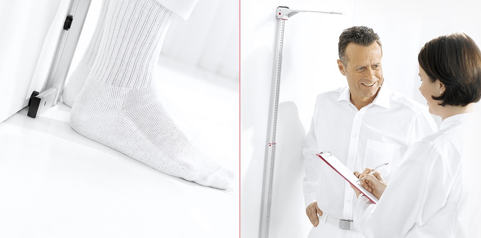 Telescopische meetlat, speciaal ontworpen voor muurmontage, die van hoofd tot teen tot op de millimeter precies is afgesteld. Zijn verbrede meetschijf en hielpositionering zijn een professioneel vereiste. De telescopische meetlat verzekert een gemakkelijk afleesbaar resultaat op lichaamshoogte van 130,5 cm, zelfs voor de grootste patiënten. Bij het niet gebruiken kan de meetlat veilig ingeklapt worden.