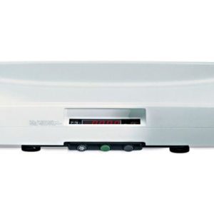 Robuuste opstapweegschaal, plat model. Met gebruiksvriendelijke dubbele LCD-scherm dat tegelijkertijd door de arts en de patiënt kan worden afgelezen. Met voetbediende aan/uit-schakelaar. Kinderen wegen wordt vereenvoudigd door de moeder/kind-functie te activeren.