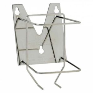 b) Universele inox muurhouder MET elleboogbediening voor 600 ml flacons, schuin model