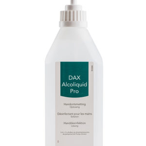 Dax Alcoliquid ProDax Alcoliquid Pro is een hygiënische vloeibare handontsmetting te gebruiken zonder water, Alcoliquid Pro heeft een bactericide, fungicide, mycobactericide en virucide werking. Het product werkt snel en efficiënt, en heeft een langdurige werking Kleeft niet na het verdampen Toevoeging van glycerine als vochtinbrengend middel maakt dat de huid haar natuurlijke vochtbalans behoudt en voorkomt dat ze uitdroogt Zonder parfum en zonder kleurstof Alcoholsterkte 83,62% – Flacon à 600 ml met doseerpomp Ref. 0494