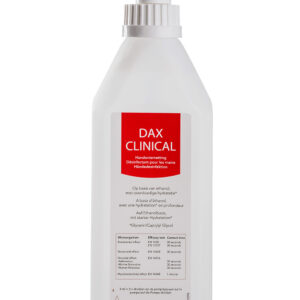 Dax Clinical HandontsmettingDax Clinical is een hygiënische en chirurgische handontsmetting Deze handontsmetting werkt snel en kleeft niet na het verdampen Bevat 75% gedenatureerde ethanol. Toevoeging van glycerine en caprylyl glycol als hydraterende ingrediënten maakt dat de huid haar natuurlijke vochtbalans behoudt en voorkomt dat ze uitdroogt Zonder parfum en zonder kleurstof Dax Clinical heeft een bacteriedodende, schimmeldodende, microbacteriedodende en virusdodende werking – Flacon à 150 ml in zakformaat; ref. 773-24 – Flacon à 600 ml met doseerpomp; ref. 774-15 – Navulling 700 ml voor AUTOMATISCHE dispenser AD 139 ; ref. AD 776-8 – Navulling 1000 ml voor dispenser PUSH MD 153: ref. 778-6 Ref. 773-24 / 774-15 / AD776-8 / 778-6
