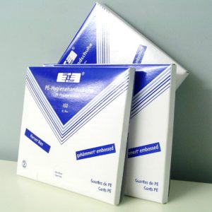 Disposable handschoenenen in polyethyleen.