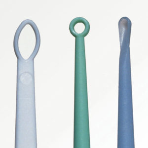 Wegwerp oorcuretten uit polypropyleen, type “Safe Ear Curettes”.