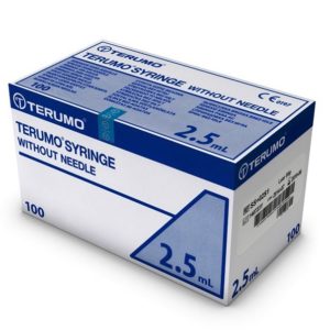 Spuiten Terumo 2 cc – 21G x 1 1/2″ (0,80 x 38 mm). Steriel per stuk verpakt in een doos à 100 spuiten.