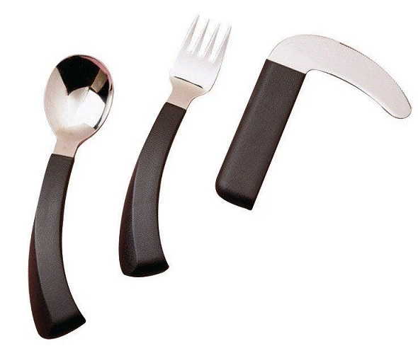 Gekarteld 90° gehoekt mes, speciaal ontworpen voor mensen met een beperkte hand- en polsfunctie. Vaatwasserbestendig model