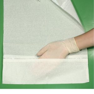 Zacht en comfortabel voor de gebruiker. Chirurgisch geplooid met ingeslagen rafelkant: alle losse naden zijn naar binnen geplooid, zodat het kompres na éénmalige ontplooiing geen rafelkant vertoont.
