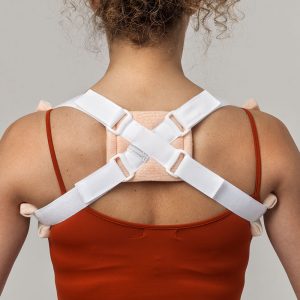 Zgn. rugzakverband of cijfer 8-verband. Met verstelbare velcrosluitingen, tractiebestendig. Met polstering van schuim, overtrokken met Jersey 100% katoen, op rug, op schouderbladen en onder de armen voor een optimaal comfort. Wasbaar op 40°.