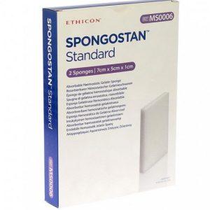 Absorbeerbare hemostatische gelatinespons met een neutrale pH: wanneer deze in contact komt met bloed veroorzaakt het grote oppervlak van spons een snelle afbraak van bloedplaatjes en treedt een normale coagulatie (bloedstolling) op. De spons is a-toxisch en geeft geen kans op allergische reacties. Het kleeft aan het wondoppervlak en absorbeert ongeveer 40 maal het eigen gewicht aan bloed. Het kan droog gebruikt worden of gedrenkt in een fysiologische zoutoplossing of antibiotica en kan makkelijk in elke gewenste vorm worden gesneden.