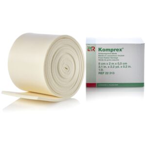 Komprex Schuimrubberzwachtel is een gebruiksklare elastische zwachtel uit schuimrubber die wordt gebruikt voor compressie bij oedeembehandeling in de flebologie en lymfologie. Door de combinatie met andere compressiezwachtels (bv. Rosidal K) wordt de compressiewerking verhoogd. Dikte van de zwachtel: 5 mm
