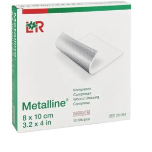 Metalline compressen worden gebruikt voor alle wondtypes. Het gealuminiseerde wondkussen van de Metalline-compressen bestaat uit soepel en zacht, uitzonderlijk dun, non-woven materiaal met goede drainage-eigenschappen. Het gladde oppervlak blijft niet aan de wonde kleven, zodat het verband zonder trauma kan worden verwisseld, waardoor het genezingsproces wordt bevorderd.