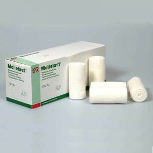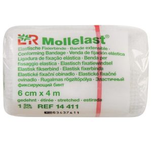 Mollelast is een zeer elastisch en luchtdoorlatende windel met stevige grip voor alle soorten verbandfixatie. Mollelast fixeert verbanden zonder af te snoeren, voelt prettig aan op de huid, past zich goed aan de lichaamsvormen aan en kan worden aangelegd zonder plooien. De windel is eveneens geschikt voor lichte compressie, vooral bij lymfologisch vinger- en teenverband.