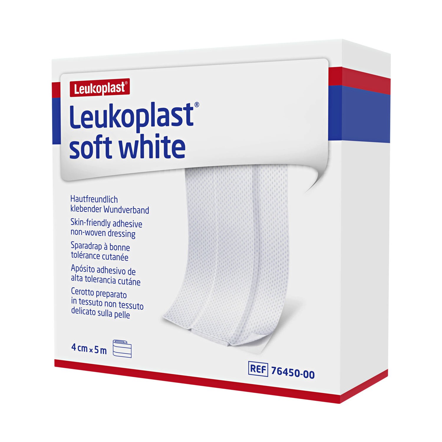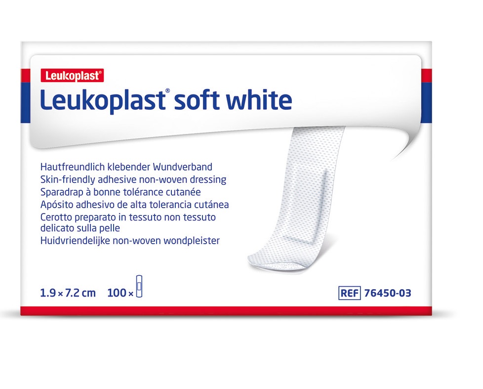 Huidvriendelijke, hypo-allergene pleister met een niet-klevend compres. Leukoplast Soft white is zeer lucht- en waterdamp doorlatend, waardoor hij zeer geschikt voor patiënten met een gevoelige huid