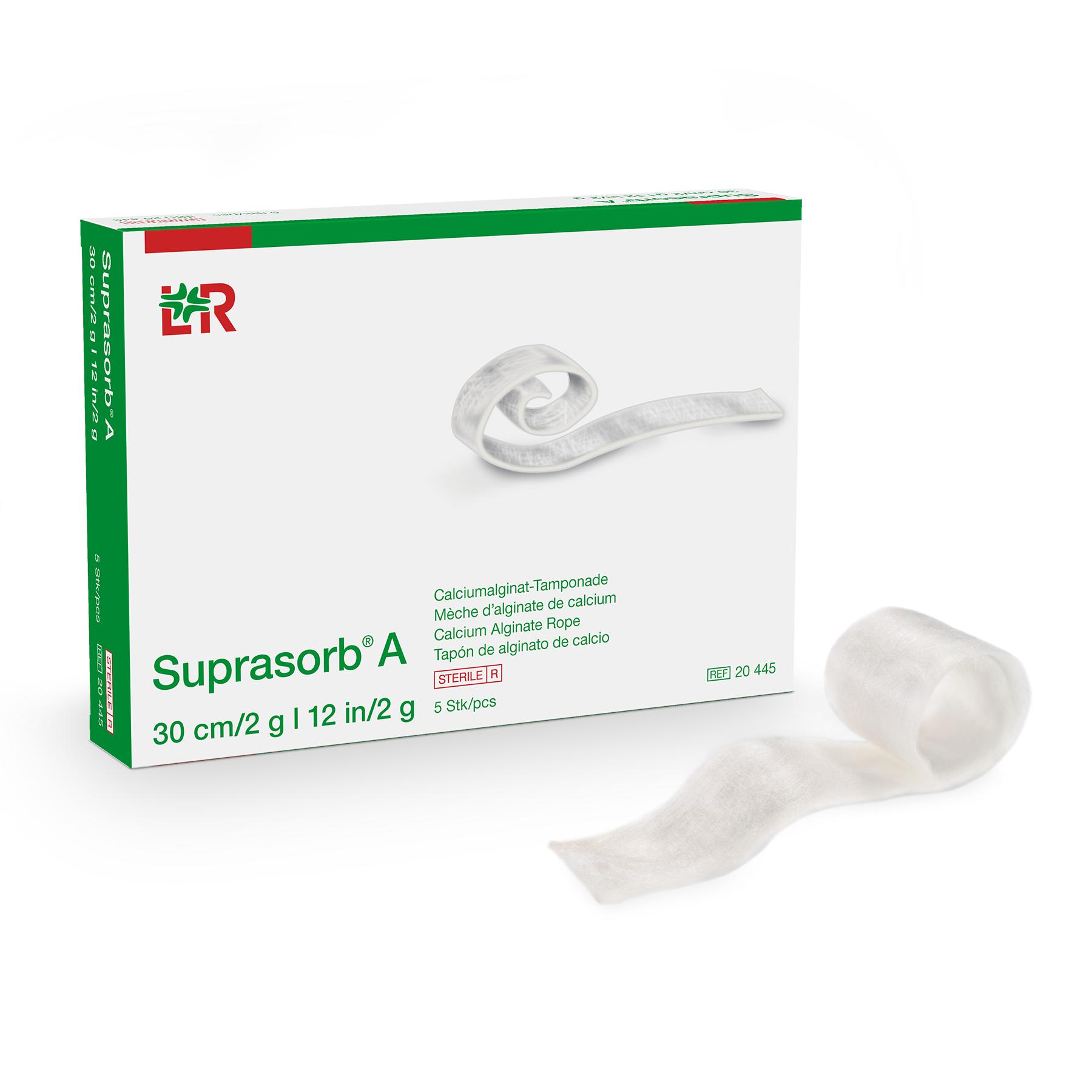 Suprasorb A zorgt voor ideale, goede wondomstandigheden bij sterk exsuderende wonden en garandeert een grote absorptiecapaciteit van exsudaat. Het verband geeft een snelle gelvorming door uitwisseling tussen calciumionen van het verband en natriumionen in het wondexsudaat. Het is zacht, met uitstekende tamponnerende eigenschappen waardoor het geschikt is voor elke wondbasis