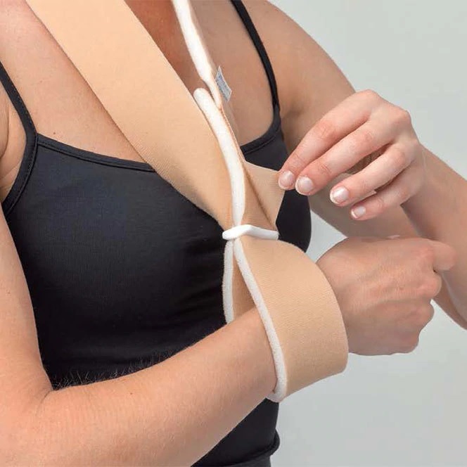 Ter ondersteuning van een geïmmobiliseerde arm in gips- of spalkverband of in compressieverband.